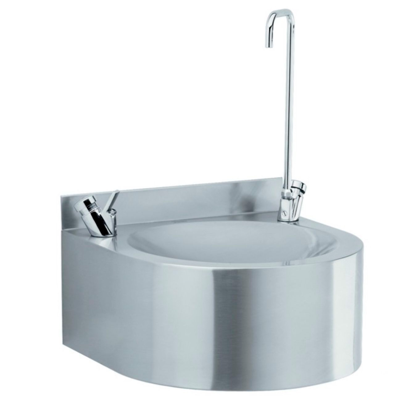 Айналмалы краны, батырмасы және СанЕжәнеН сақинасы бар қабырғаға арналған түрі мектептерге, ауруханаларға, балабақшаларға, өндірістік және ауыз суды қажет ететін басқа да үй-жайлар мен орындарға орнатуға арналған. Стандартты биіктігі 450 мм, бірақ біз тапсырыс бойынша кез келген өлшемді жасай аламыз.